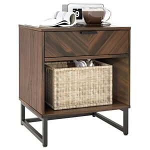 End Table with Storage Shelf and Fabric Drawer, 2 Tiers Industrial Nightstand, Retro Bedside Table Organizer, 23.6 Inch Tall Side Table for Living Room Bedroom, Rustic Brown and Black, Easy Assembly