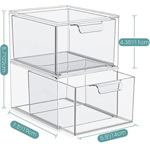 SpaceHacks 2 Pack Stackable Makeup Organizer and Storage, Acrylic Organizers,Clear Plastic Storage Drawer with Handles for Vanity, Undersink, Kitchen Cabinets, Pantry