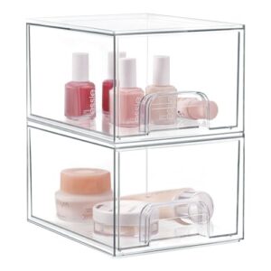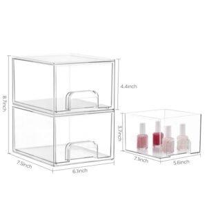 HBlife Pack of 2 Makeup Organizer Countertop Stackable Drawers Organization and Storage Bins Cosmeitc Organizer Clear Acrylic Organizer Bathroom Organizers Container