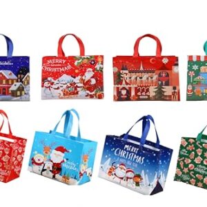 FIZILI 8PCS Christmas Gift Bags,Reusable Christmas Gifts Tote Bags,6.7IN*12.5IN*9.8IN,Nonwoven Christmas Gift Bags for Xmas Party