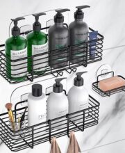 YUNISS Shower Caddy 5 Pack,Adhesive Shower Organizer Shelves with Soap Holder,No Drilling Shower Storage Rack for Bathroom and Kitchen (Black 5)