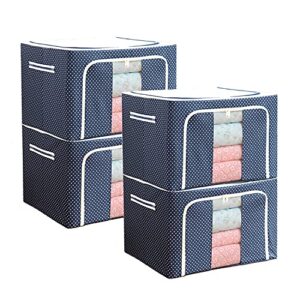 Jasonandiris Steel Frame Storage Box Oxford, 100L Cloth Storage Box for Quilt Storage Box Folding Wardrobe Fabric Extra Large Storage Bag with Reinforced Handle, Clear Window, Sturdy Zippers (4)