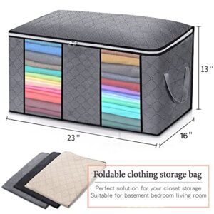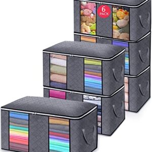 90L Large Storage Bags, 6 Pack Clothes Storage Bins Foldable Closet Organizers Storage Containers with Durable Handle for Clothing, Blanket, Comforters, Bed Sheets, Pillows and Toys (Gray)