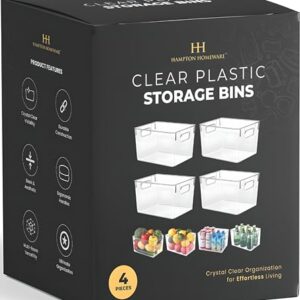 Clear Plastic Storage Bins – 4 Large Containers for Kitchen Organization or Pantry Organization and Storage, Fridge Organizer Plastic Bins, Pantry Organization and Storage Bins, Cabinet Organizers