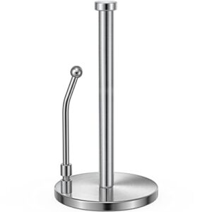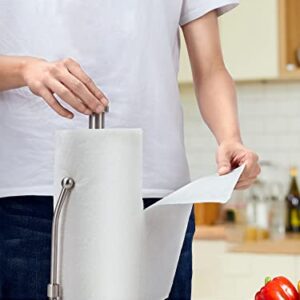 SMARTAKE Paper Towel Holder, Paper Towel Dispenser Standing Weighted Base Non Slip, Spring Arm Fit Most Size Paper Roll, Stainless Steel Paper Towel for Home Kitchen Countertop Tabletop, Silver