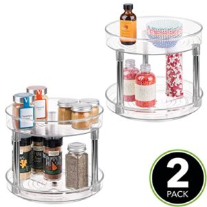 mDesign 2-Tier Lazy Susan Turntable for Kitchen Cabinets, Shelf, Table, Countertop, 9″ Multi Level Rotating Organizer Carousel, Storage Turntable Organizer, Ligne Collection, 2 Pack, Clear/Chrome
