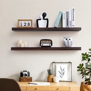 Floating Shelves 36 Inches Long – Rustic Solid Southern Pine Wood for Storage – Farmhouse Wall Mounted for Living Room – Heavy-Duty Metal Bracket – 36″ W x 6.7″ D – Set of 2 – American Walnut