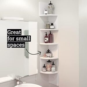 Greenco 5-Tier Corner Shelves, Floating Corner Shelf, Wall Organizer Storage, Easy-to-Assemble Tiered Wall Mount Shelves for Bedrooms, Bathroom Shelves, Kitchen, Offices, & Living Rooms (White Finish)