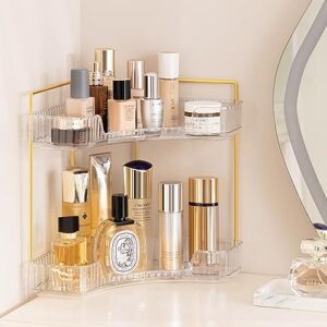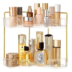 HBlife 2 Tier Corner Bathroom Organizer, Makeup Organizer Skincare Storage Perfume Tray for Bathroom, Dresser, Vanity, Clear