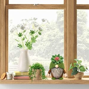 Succulent Gnomes Green Summer Gnomes Plush with Thick Fleshy Stems Leaves Tomte Handmade Scandinavian Tiered Tray Decor Cacti Nordic Dwarf Home Shelf Sitter Decor Collection Garden Gift Cactus Lovers