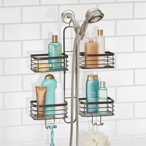 mDesign Metal Steel Hanging Shower Caddy, 4 Basket Organizer Rack for Bathroom; Hold Handheld Shower Head, Hose, Shampoo, Conditioner, Shaving Cream, Soap, Loofah – Carson Collection – Bronze