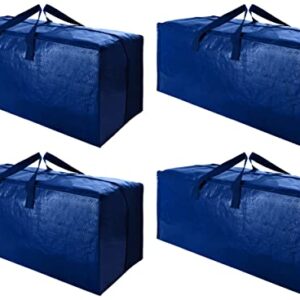 Cosy Family 4 Pack Heavy Duty Extra Large Moving Bags with Backpack Straps – Strong Handles & Zippers, Storage Totes For Space Saving, Fold Flat, Alternative to Moving Box (X-Large-Set of 4, Blue)