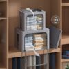 【STACKABLE & FOLDABLE STORAGE BIN】: This storage box uses an integrated metal frame and reinforced MDF bottom plate, which is more durable than other disassembly storage boxes. When the storage box is opened, it can play a good supporting role to maintain a complete shape. When not in use, it can be folded flat to save space. Store on shelves, closets, garage, basement, attic, or under-bed/desk.