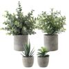 Perfect Set: We’ve included two cylinder-shaped and two oval artificial plants in a variety of species. Eucalyptus pot ( 18*25cm / 7.1*9.8inch ), Gypsophila pot ( 17*23cm / 6.7*9.1inch ), Reed pot ( 7*14.5cm / 2.8*5.7inch ), Succulents pot ( 7*10cm / 2.8*3.9inch )