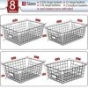 8 BASKETS, 4 SIZES – The 8 metal wire baskets come with 4 different sizes – 2 XXlarge, 2 Xlarge, 2 Large and 2 Medium. XXlarge – 15.6″(L) x 11.2″(W) x 6″(H). Xlarge – 15.2″(L) x 10.6″(W) x 5.6″(H). Large – 12.2″(L) x 9.5″(W) x 5.5″(H). Medium – 11.2″(L) x 8.7″(W) x 4.7″(H). You can use different sizes for different purposes.