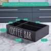Coffee Bar Decor – The black wooden coffee organizer is an eye-catching display that brings rustic charm to your buffet, coffee or tea service, or self-serve beverage station. This black coffee bean rack will make your coffee bar look great!