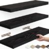 BAYKA Floating Shelves, Wall Mounted Rustic Wood Shelves for Bathroom, Bedroom, Living Room, Kitchen, Small Hanging Shelf for Books/Storage/Room Decor with 22lbs Capacity (Black, Set of 3, 16in)