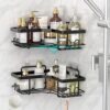 FLATTERMONN 2 Pack Corner Shower Caddy,Strong adhesive Shower Organizer Shelf with 8 hooks.Waterproof, rustproof wall-mounted shower shelves for bathroom,dorm and kitchen .No Drilling (Black)…