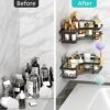 Strong Adhesive:No drilling and no damage,Shower storage shelf secured by strong adhesive, trace less adhesive that won’t damage the shower wall. no worry about falling down.Tool-free installation means no damage to your wall, just apply the adhesive on your shower wall, then hang your shower organizer.