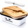 Butter Dishes, Dining and Entertaining, Dinnerware and Serveware, Home and Kitchen, Kitchen and Dining, ServewareButter Dish with Lid and Knife: The butter dish with lid for countertop has been updated, so when you want to use the butter dish, you don’t have to look for the knife anymore, and the butter dish with lid comes with a multi-purpose butter knife, the lid of butter dish fits perfectly with the butter knife, and the butter dish with knife has a smear, scraping, slicing three functions, when you cut and spread butter, the cover of the butter dish can be a cutting board.