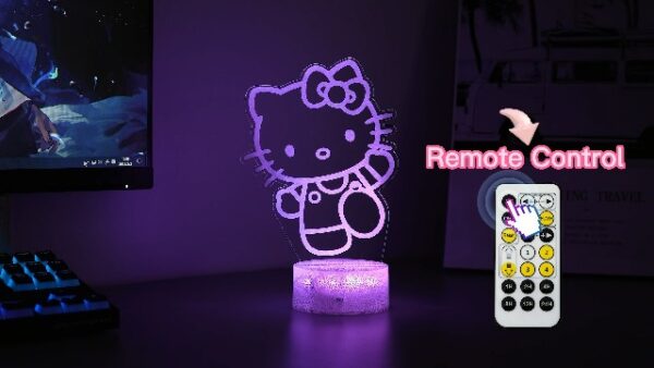 Cat Night Light – Anime Charater 7 Color Change Decor Kitty Lamp with Remote, Dim, Timer, Game Fan Gifts for Christmas Birthday Boys Girls