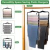 Pants Hangers Space Saving: Several jeans on the same pants hangers are a smart solution for those who have more clothes than space, keeping your pants organized. Pants hangers space saving made of ABS material, strong and not easily deformed, velvet hangers are great choice. Closet organizer hanger 360-degree swivel hook provides a clear view, easily organize trousers and decide what to wear. Each jean hangers can hang 5 pairs of pants. With no need to fold pants, you can maximize closet space