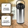 Easy to Use, Built to Last: Designed for effortless operation and unmatched durability, our thermal carafe airpot simplifies your daily coffee rituals. Its portable hot water dispenser design ensures you can enjoy your favorite beverages anywhere, anytime whether it be a soccer game, meeting, or anything in between.