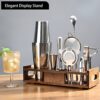 WHAT YOU GET: essential weighted 18oz & 28oz shaking tins, double jigger, 3 pieces wine pourers, muddler, long 12-inch bar spoon, Hawthorn strainer, fine mesh strainer, waiter’s corkscrew, ice tongs, peeler, display organizer in classic walnut color, pretty recipe card. Plus 7X24 customer service for any questions.
