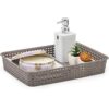 [ VERSATILE TRAY BASKETS ] The EZOWare Plastic Woven Tray Bin Baskets are an easy solution to organize your home, apartment, or other living spaces. Use them to organize shelves and rooms, add to your home decor, or storage for everyday personal items.