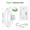 Superior Quality: Our suction cup hooks is made of clear PVC and quality anti-rust stainless steel, it is soft and sturdy, lightweight and waterproof, temperature resistant, will not yellow or lose adhesion over time.