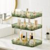 HBlife Bathroom Countertop Organizer 3 Tier Makeup Organizer Perfume Tray Skincare Storage Cosmetic Organizer Bathroom Counter Shelf, Clear Green