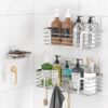 Htworg CR Shower Caddy Basket Shelf, 3-Pack SUS304 Stainless Steel Shower Organizer and Soap Holder for Bathroom & Kitchen, No Drilling Adhesive Shower Shelves with Removable Hooks, Silver