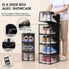 jphoiy box Shoe Storage Boxes Clear Stackable, 9 Packs Shoe Organizer for Closet,Sneaker Box, Strong and Sturdy Fit Up to Maximum Size of US12