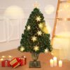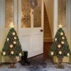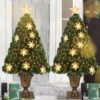 Juegoal 3 FT Pre-Lit Artificial Christmas Tree, 2 Pack Lighted Optical Fiber Entrance Tree in Gold Urn Base with Lights, 8 Lighting Modes, 110 Branch Tips Front Door Porch Entryway Holiday Home Decor
