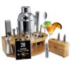 Karabakh Cocktail Shaker Set, 17 Pcs 25Oz 304 St. St. Bartender Kit Cocktail Set Bar Set Cocktail Kit, 4 Pcs Whiskey Bullet Set With Bamboo Stand, 20 Pg Cocktail Recipes Booklet, Father`s Day Gift Idea Bar Kit