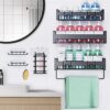 【Alloy Steel Shower Rack】Multiple processes make the adhesive shower rack more sturdy and durable. The bottom is hollowed out for quick drainage, keeping bath products dry. Suitable for long-term use in bathrooms, shower rooms, kitchens, and living rooms.