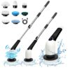 Keimi Electric Spin Scrubber, 2024 New Cordless Voice Prompt Shower Cleaning Brush with 8 Replaceable Brush Heads, 3 Adjustable Speeds, and Adjustable Extension Handle for Bathroom Floor Tile