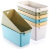 Kingrol 8 Pack Plastic Storage Baskets, Stackable Storage Organizer Bins for Home, Office, Nursery, Laundry Shelves Organizer, Multi-Color, 10.75 x 5.25 x 5 Inch