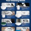 đă8 Multi-Purpose Brush Headsă: Your go-to tool for all cleaning scenarios! We provide 8 unique brush heads that handle everything from cleaning concave areas like bathtubs and sinks, cleaning narrow and hard-to-reach areas like corners and gaps as well as cleaning grounds, glass, tile wall, car surface, wheel hub, car seat, furniture and stove. Cleaning becomes fun, and no nook or cranny is left untouched.