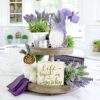 Lavender Swedish Gnomes Decorations for Home Pastel Purple Spring Summer Tiered Tray Tomte Plush Decor Nordic Dwarf with Artificial Greenery Kitchen Collective Gift for Women Family Friend Colleague
