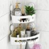 LEVERLOC Corner Shower Caddy Suction Cup 2 Tiers No-Drilling Removable Shower Caddy Basket Powerful Suction Bathroom Shower Shelf Waterproof & Oilproof Bathroom Organizer for Bathroom & Kitchen-White
