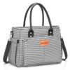 Lunch Bag for Women, Insulated Lunch Box for Work, Large Leakproof Cooler Purse with Side Pockets & Removable Shoulder Strap Women’s Lunch Tote Bag for Picnic Work Beach(Stripe)