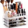 Masirs Clear Cosmetic Storage Organizer, Easily Sort Make-up, Jewelry & Hair Accessories, Looks Elegant on Your Vanity, Bathroom Counter or Dresser, Transparent Design for Easy Visibility