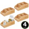 mDesign Bamboo Wood Compact Bathroom Storage Organizer Bin Box – 3 Divided Sections – Cabinets, Shelves, Countertops, Bedroom, Kitchen, Laundry Room, Closet, Garage, 4 Pack – Natural/Tan