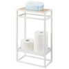 FREE STANDING DESIGN: This free-standing toilet paper holder is easy to move anywhere in the bathroom; Perfect for bathrooms with no wall mount fixtures; Great for guest bathrooms half baths, powder rooms, and smaller spaces where storage is limited; Use in homes, apartments, condos, RVs, campers, and cabins to create instant storage space; Ideal for small space living and tiny homes