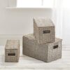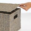 mDesign Natural Woven Seagrass Closet Storage Organizer Basket Bin with Removeable Lids to use in Closet, Bedroom, Bathroom, Entryway, Office – Set of 3 – Gray Finish
