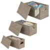 PORTABLE: These storage bins have integrated, built-in handles making them easy to pull on and off of shelves or cubbies; Use together to create a large organizational set or separate the items for coordinated storage throughout the room; Bins have removable lid which makes it easy to move and store items; Decorative and functional, these stylish baskets are great in living rooms, family rooms, entryways and mudrooms; Great for apartments, condos, and college dorm rooms