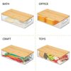 PORTABLE: Built-in, easy-grip side handles make it easy to transport from shelf to table or island; Organize all of your kitchen essentials and create handy go-to supply baskets to make organizing and everyday living a little easier; The integrated feet keep these containers secure when stacked; Removable bamboo lids keep contents protected and dust-free; Store kitchen essentials: towels, candles, baking supplies, straws, and skewers; Great for busy families and professional organizers
