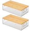 These Kitchen Storage Bins by mDesign are perfect for food or utensil storage. We make it easy for you to organize like a pro. Sort all of your favorite snack foods, napkins, flatware, dried goods, and other essentials. The natural bamboo lids keep items from collecting dust and make your cabinet or pantry look neat and tidy. The built in handles of these bins let you move from cupboard or fridge shelves to the countertop, table, or island hassle-free. Convenient and stackable, these bins can be used in almost any room, not just in the kitchen! It’s easy to create a custom storage solution that works best for you – in any room of your home! mDesign – Solutions for Home. Solutions for Life.