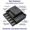 Gift ready because we know that the Admiral watch box and jewelry organizer is one of the top gift items this year, it comes in a heavy black textured Gift Box that really adds to the “WOW” factor. It makes a serious impression on whoever is lucky enough to get this dresser valet box as a gift.